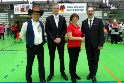 Ernennung zur Beauftragten für Country Westerntanz des TTSV 2015 (ganz links Josip Miolcic - Vorsitzender des BfCW, rechts neben Sylvie: Hans-Peter Sommer - Vorsitzender des TTSV und links neben ihr: Christian Simon - Sportwart des TTSV)